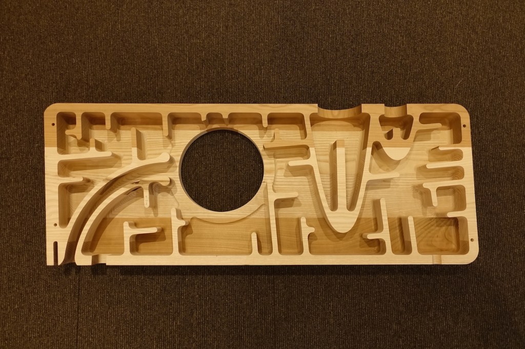 この画像(W11キャビネット内部構造)を紹介したのも随分前の事になりますが、改めて製作者の考えや拘りが見てとれます。W11 もフロントから見ると細く、ラウンドの入ったデザインは佇まいも落ち着いているのですが内部はこれだけ細かく調整を施してあり Swing Base での設置方法も含めて細部に手の込んだ仕上がりになっています。