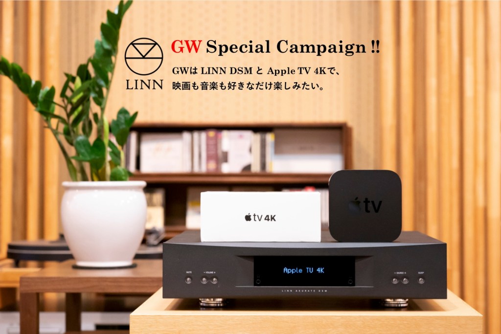 LINN DSM との組み合わせで最もシンプルな映像再生とすればやっぱり Apple TV 、4Kとなってますます楽しいコンテンツが増えているところ。iTunes Store はもちろん Netflix や Prime video、huluも含めて LINN DSM での映画鑑賞をお楽しみ下さい。今回はGWの期間限定で対象機種ご購入のお客様に Apple TV 4K をプレゼント致します。この機会に是非、LINN DSM を皆様のシステムへ迎えてください!!