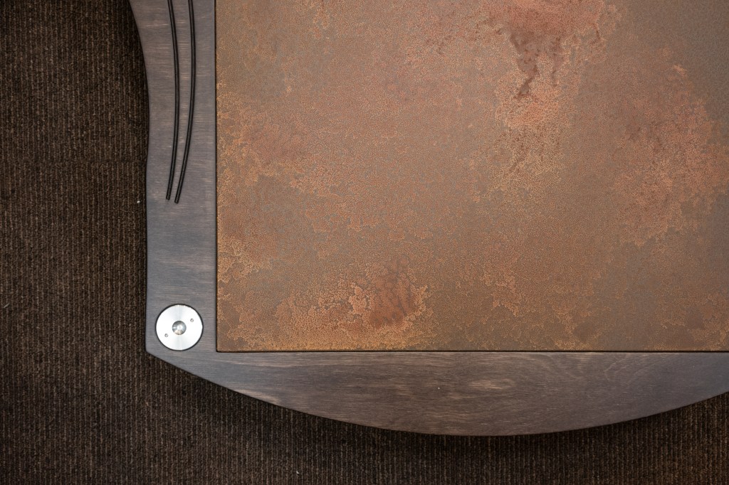 今回ご用意したのは Reference Line から Accordeon の2段仕様。特別仕上げの California と Mercurial をそれぞれ設置しています、特に California は資料から想像していたより実物をみることで棚板の仕上げも非常に落ち着きのある雰囲気を感じ取れます。