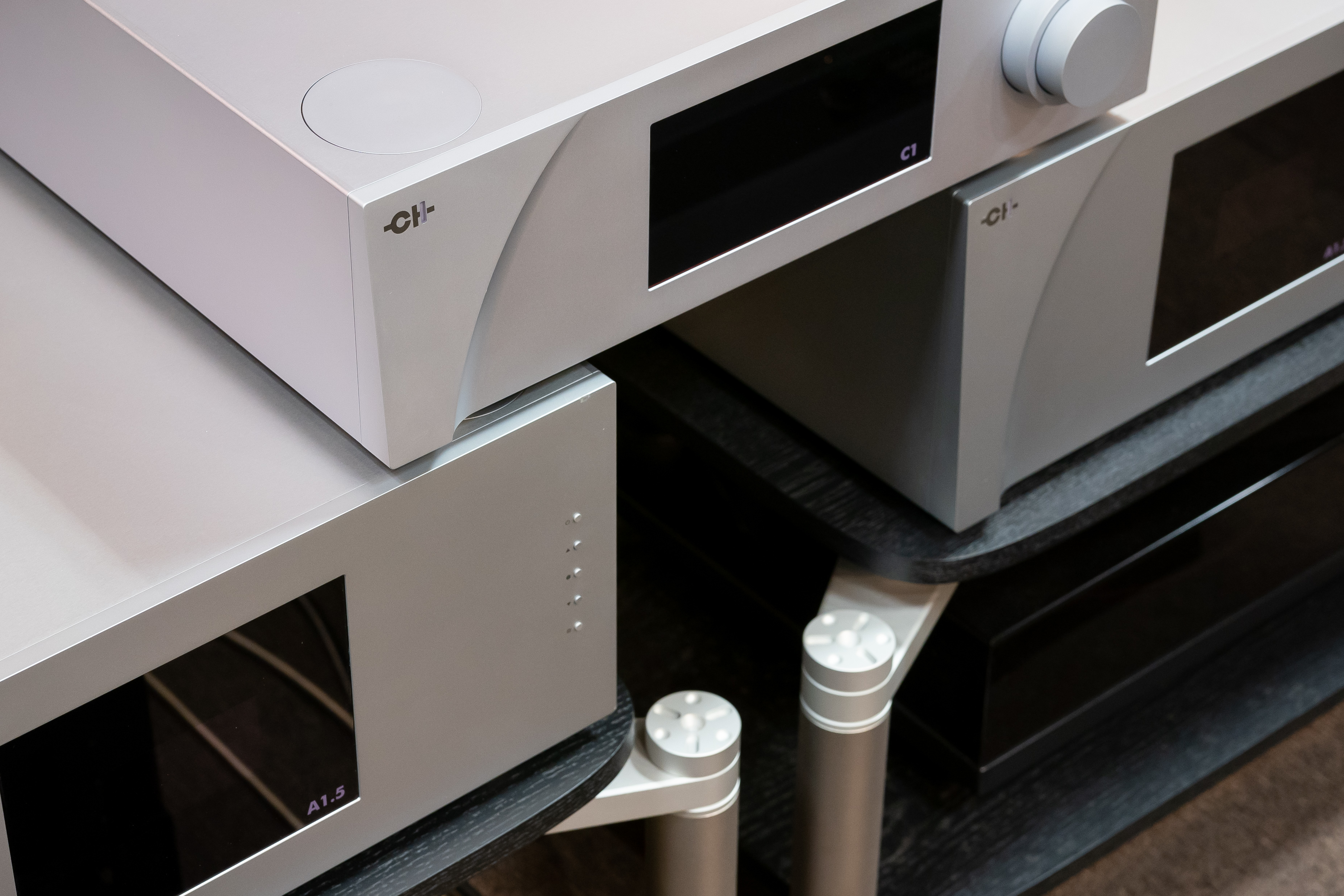 Parker Quintet はフロントバッフルに並んだAccuton製のピュアダイアモンドツィーター、セラミックミッドドライバーとベースドライバーの5基がメインユニットとなります。これだけでも Marten の大きな特徴とも言える圧倒的な解像度は十分に成立しているのですが、キャビネット背面のアルミニウムパッシブラジエーター4基がダイアモンド、セラミックという素材の優位性をさらに際立たせる役目を担っていることでそれまでの同素材を用いたスピーカーとは一線を画す完成度に仕上がっているのです。広大でゆったりとした音場をつくり出すにも関わらず、各楽器、声など演奏を構成する音のパーツの際立ちが非常に明確なので広大な音場感に支配されて曖昧になる細部の表現が一切ありません。更に大音量でも小音量でもその表現が揺るがないことも素晴らしいと思えます。というようなスピーカーだと感じている事もあり、今回用意した CH Precision との組み合わせは今まで感じていた Parker Quintet の魅力を更に引き上げてくれるのだと期待してのものです。これからじっくりとその深みへ潜り込んでいきたいと思います。