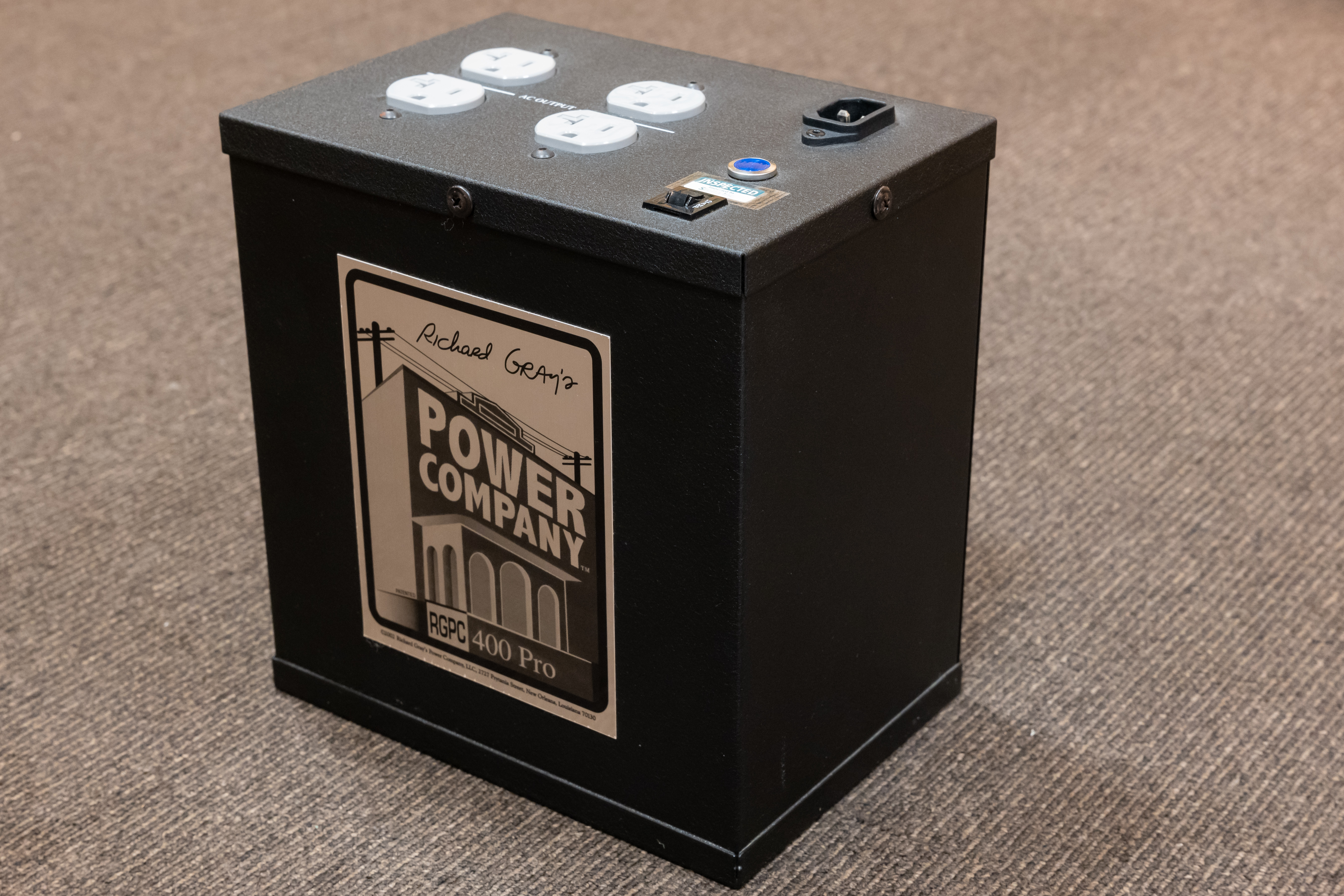 RGPC(Richard Gray’s Power Company) のAC電源エンハンサーは、チョークコイルをAC電源に並列(パラレル)に挿入するという独自の発想により機器へのAC電源供給を改善し、音質・画質を飛躍的に向上させます。通常のパワーラインコンディショナーのように、電気を削ぎ落として質を上げるのではなく、まったく逆の方法、つまり電気を潤沢かつスムーズに供給することにより機器の動作を安定させ、クオリティをアップさせます。 加えて、通常のパワーラインコンディショナーのように壁コンセントと機器の間に何か回路が入るということがありません。電気を食って音にクセを与える回路が途中に入らないということは、接続した機器のパフォーマンスに大きな貢献をしています。コンディション良好です。