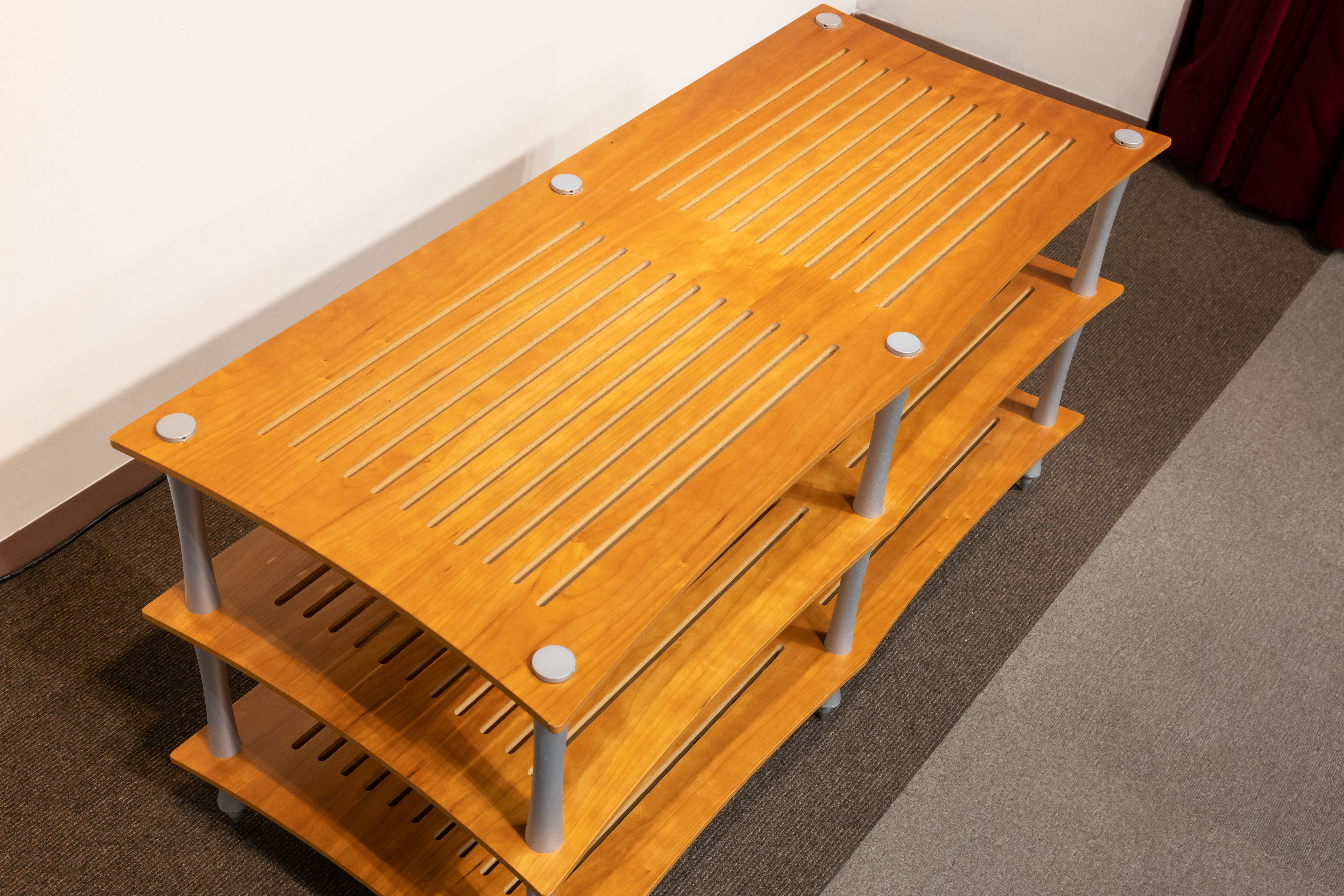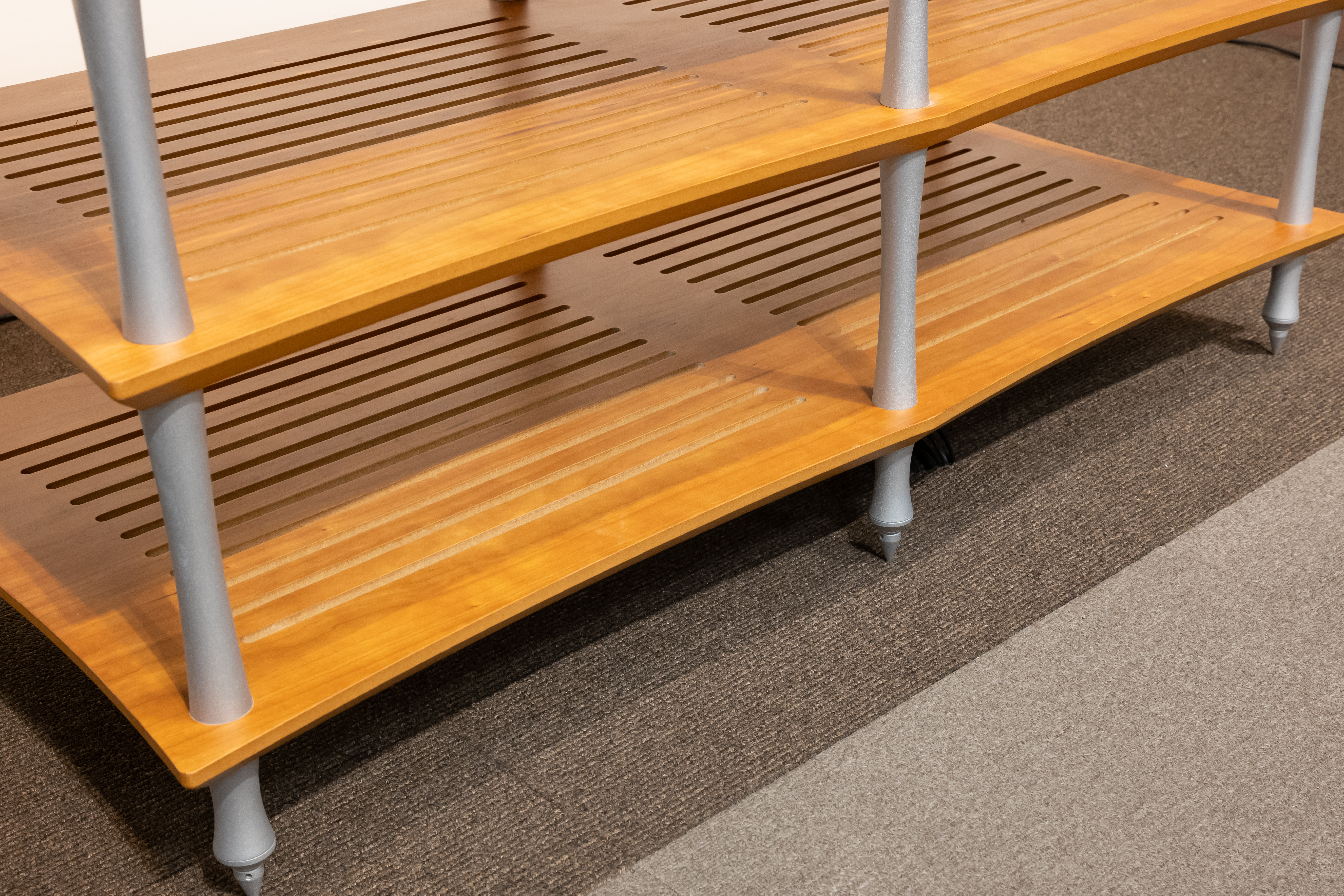人気の高い QUADRASPIRE VENT-TWIN ラックの入荷となります。25mm厚の棚板にスリットを設け振動を逃し、放熱効果も高めています。独特の棚板のシェイプもレゾナンス軽減への効果を持ち、VENT専用の32mm径ポールにてリジットかつデカップリング効果も落とし込まれています。