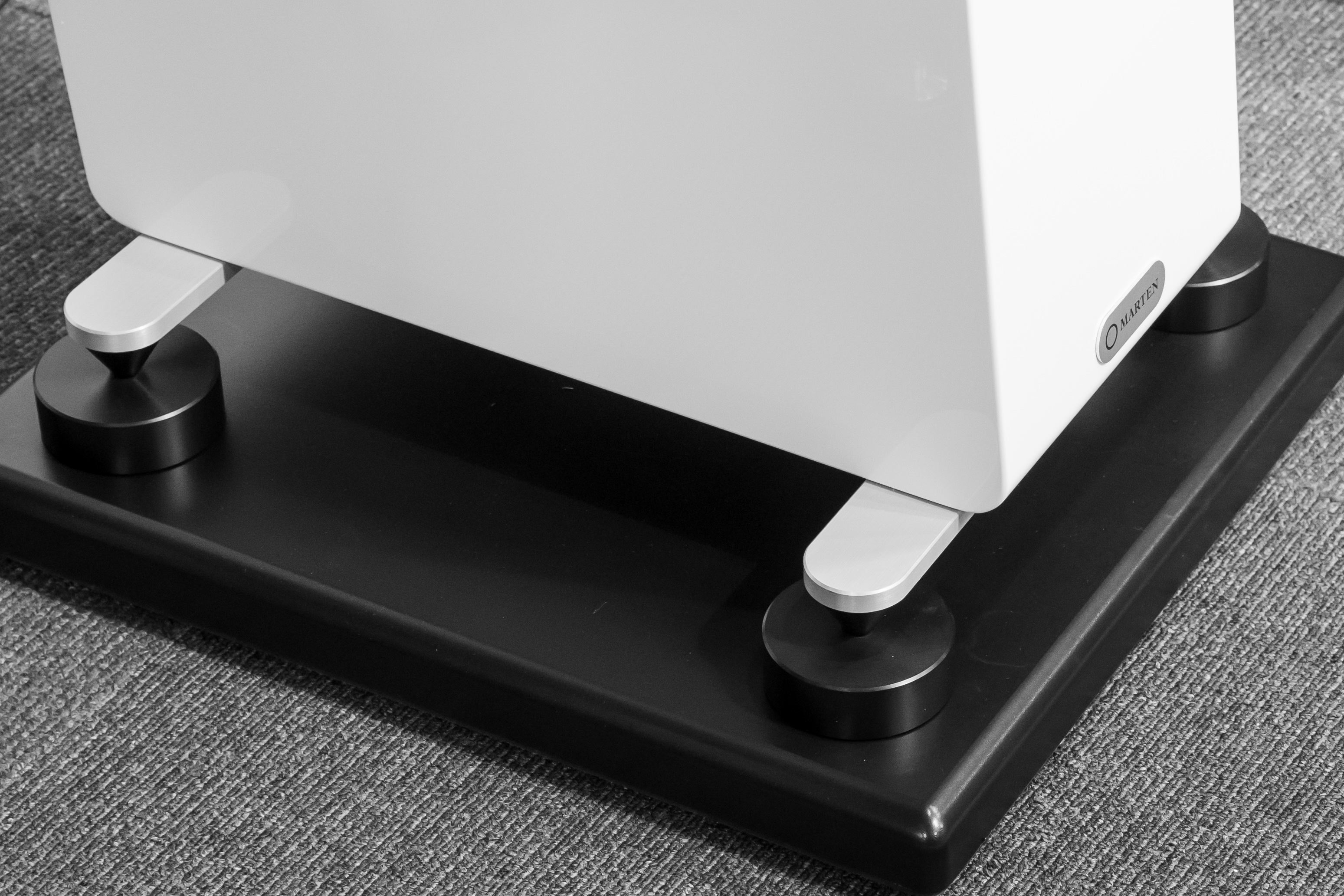 OSCAR 専用に仕上げたセラミックドライバーはやはり再生音としてしっかり MARTEN サウンドを楽しむ事ができます。清涼感がありキレのある音、抜けの良さも特徴をしっかり維持しています。楽器や声の定位も申し分なく低域の量感も過不足を全く感じません。OSCAR TRIO は底面のバスレフ方式を採用しています。スピーカー設置当初はフロアーに直置きでの試聴をしていましたが、この環境では少し低域が緩く膨らむ印象を受けたのでオーディオボードの上に設置する事にしました。ボードを使用する事により低域も締まるようになり、私としてはこれで先程の不満点はしっかり解消できたと思える範囲です。そう考えると、設置環境によって低域の感触は変化すると思いますが、ボードの素材や使い方で調整可能な範囲が広いと捉える事もできます。