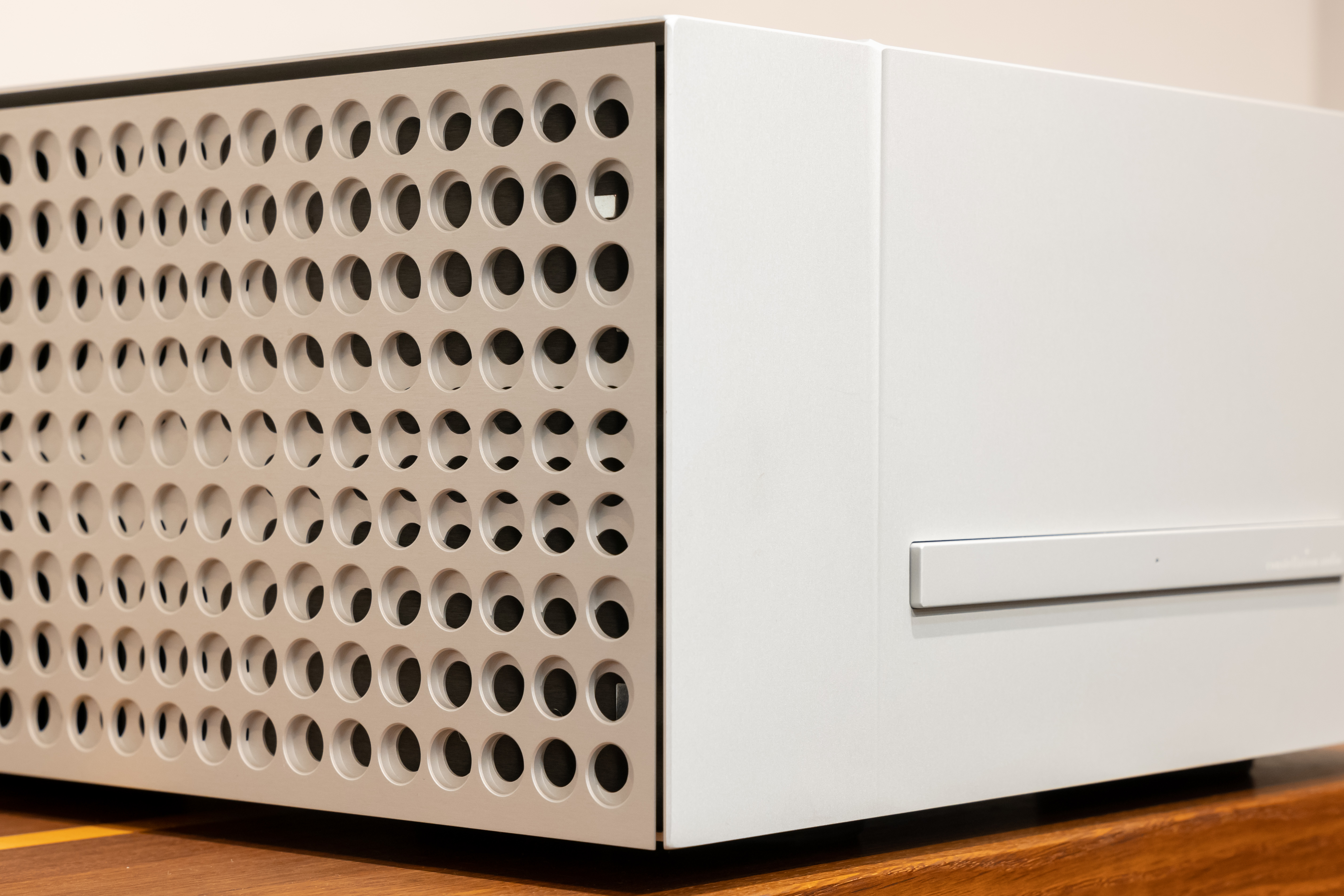 Constellation Audio からステレオパワーアンプが中古入荷しました。上位モデルと同様にN型トランジスタのみを使用したフルバランス構成を採用している為、バランス回路のポジティブ側とネガティブ側は完全に特性が一致し、回路特性のばらつきによるディテイル部分のマスキングやサウンドのカラーレーションなどのネガティブな要素が皆無です。オーディオ回路はフルディスクリート構成。巨大なカスタムトロイダルトランスから10,000マイクロファラッドの容量を持つ24基の電解コンデンサ(トータル 240,000 マイクロファラッド)に電流を供給。本体の増幅回路に十分な電流を瞬時に供給することを可能にしています。コンディションも良好です。
