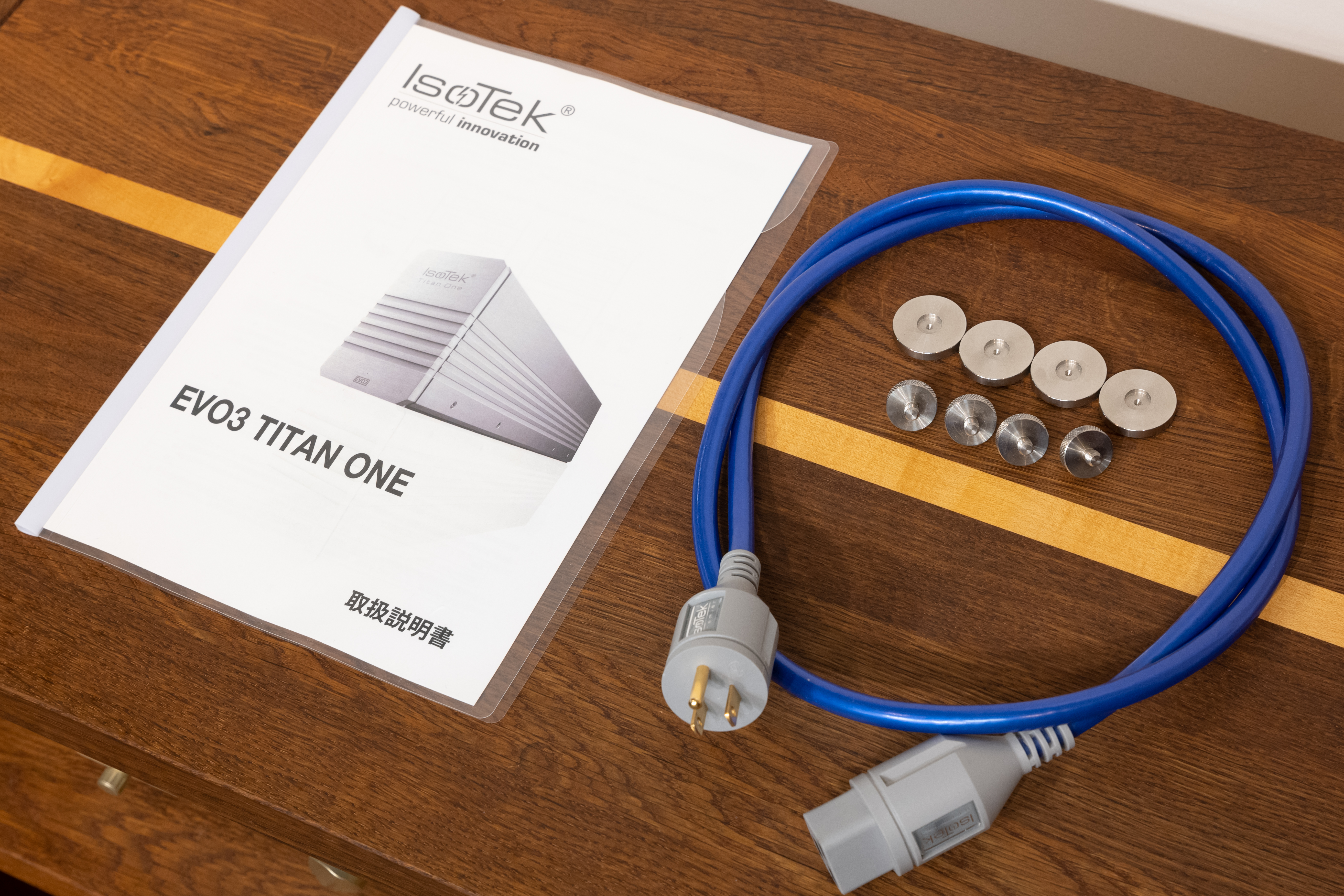 TITAN ONEはTITANの圧倒的なフィルター能力はそのままに、IECコンセントを1系統に減らし極限までスリムに改良したモデルです。設置場所に圧倒的なメリットを有しており、ステレオパワーアンプ横への設置やモノラルパワーアンプの場合はそれぞれのアンプ横に設置するといった新たな使用方法を提案します。別売りのリンクケーブルを用いれば最大6台までのTITAN ONEを横に並べて1本の電源ケーブルで使用することが可能となり、その際もサイズが小さいためラック1段に設置可能で、6台のコンポーネントに対し別筐体のTITAN ONEで電源供給が可能となるのも新しいポイントです。ディファレンシャル・モード・ノイズとコモン・モード・ノイズ双方に対応したIsoTekのオリジナルDCD(Direct Coupled Design)フィルターをTITANと同様に4段構成で搭載しています。SIGMASでもその効果の高さが実証されているアースラインへの独自フィルターも搭載しており、4段構成のDCDフィルターと相まってパッシブ型でありながら重厚なサウンドを得る事に成功しています。堅牢なアルミニウム製の筐体は音質と共に高級感にも寄与。内部配線には非常に高品位なSolid POCC(Pure Ohno Continuous Cast)が採用されています。また他のIsoTek製品同様、雷などからオーディオ機器を守る強力なサージフィルターも搭載。使用経過による多少の小さな傷はありますが、使用には全く問題ありません。