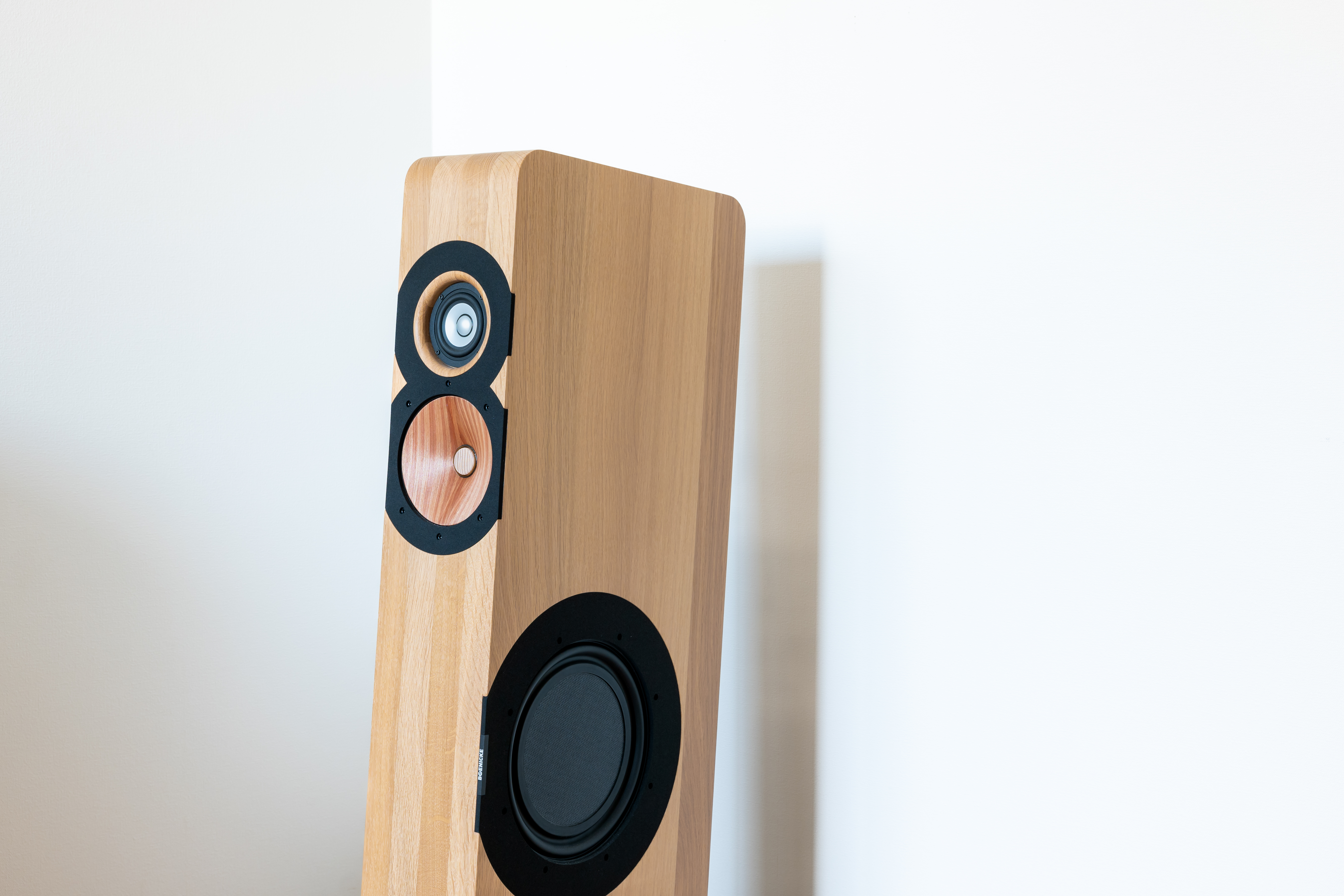 何より、無垢の木材のみを使用したキャビネットの仕上げと佇まいは設計者の音への強い拘りからのものですが、その素材が魅せる手触りや佇まいの美しさも含めてこのスピーカーの大きな魅力を醸し出していると思えます。3つの異なるサイズそれぞれに魅力がありますので、ご使用環境やパフォーマンスに応じてお選び頂けると思います。