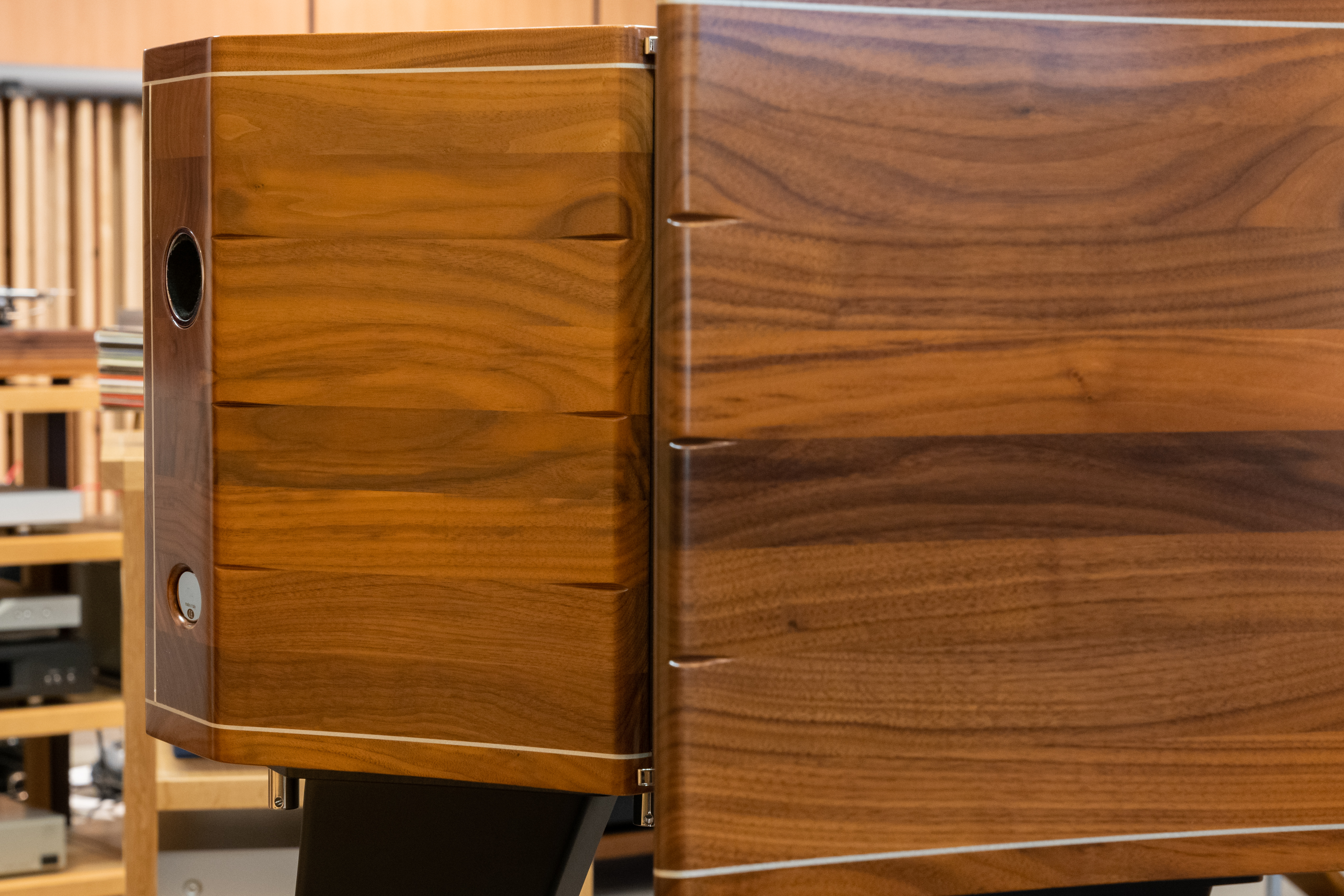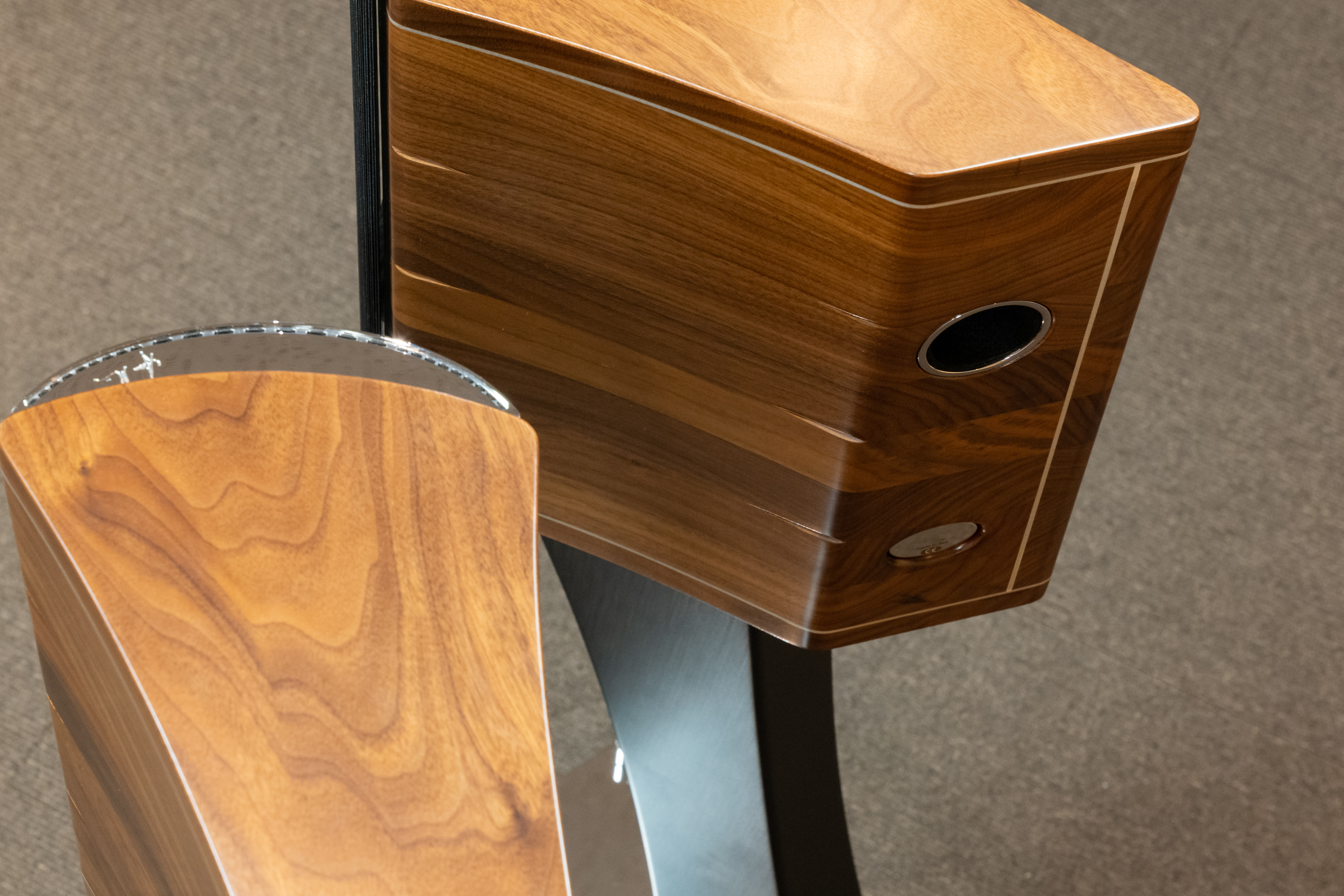 ◾️キャビネット: ウォルナット無垢材とアルミニウム・マグネシウム合金板との分離構造