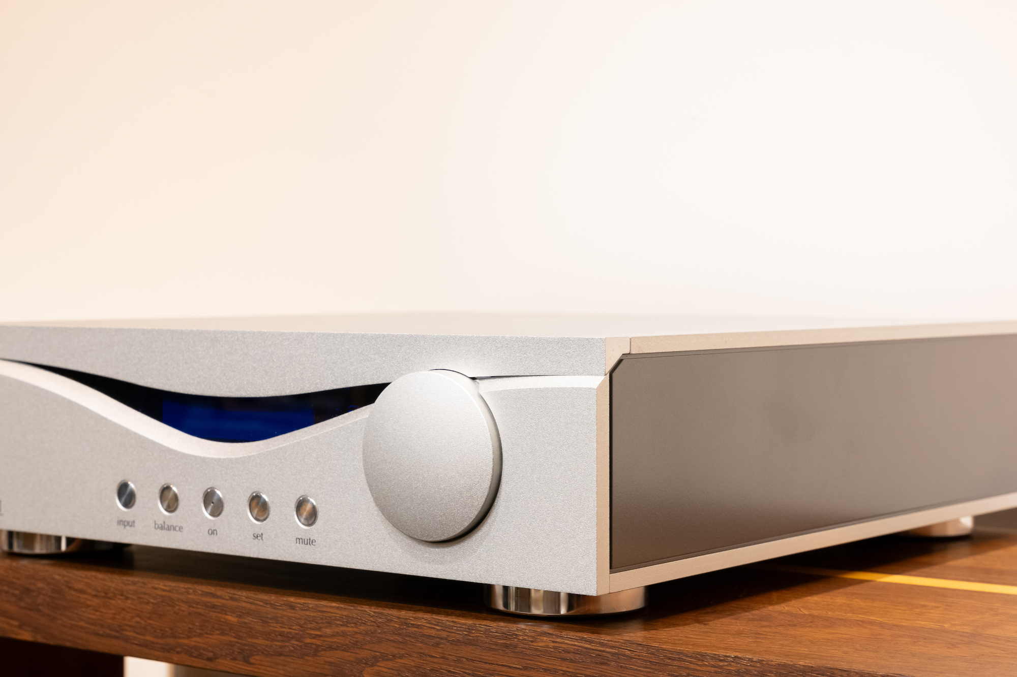 音質を極限まで追求し、リレー式ボリュームコントロールを極めたAUDIA社フラッグシップモデルのプリアンプ。電源部には4つのトロイダルトランスを搭載(L/Rチャネル用に75VA、コントロール回路用に25VA、そしてロジックボード用に15VAを使用)。それら全てのトランスは専用電磁シールドケースに格納され、エポキシ樹脂が充填されています。内部回路はL/Rチャネル完全ディスクリートのフルバランス回路を採用。独自の「コンスタントインピーダンスボリュームコントロール」を搭載。このボリュームコントロールは低ノイズ金属箔抵抗とリレーが使用されており、0-90~-30dB間は1dB刻み、-30dB~+10dB間は0.5dB刻みで調整がが可能。この独自技術により周波数特性として1Hz~1MHz -3dB、スルーレート250V/μという驚異のスペックを達成し、従来のプリアンプとは一線を画す音楽表現力を提供。また、ボリューム回路においても完全ディスクリート構造となっており、チャネル間のクロストーク要素を全て排除。コンディション良好です。