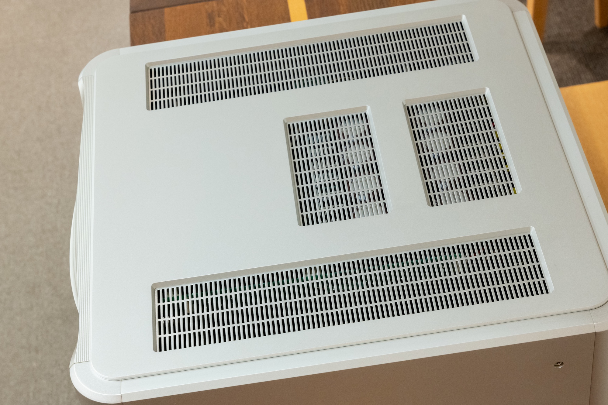 ESOTERIC フラッグシップを担う Grandioso ラインのステレオパワーアンプ、S1の入荷です。電源部に2,180VAの大型トロイダルコアを採用し、巻き線から左右チャンネルを独立。電源部のコンデンサーはチャンネルごとに4,700μF×3パラレルでデュアルモノ構成。最大出力600W×2ch(2Ω)、連続動作17A、瞬間動作34Aの電流供給能力を持ち、一般的なパワートランジスタの2倍近いサイズの大型バイポーラLAPT(Linear Amplified Power Transistor)素子を採用。大口径ユニットも正確に制動する安定感抜群のパワーアンプ。コンディション良好。