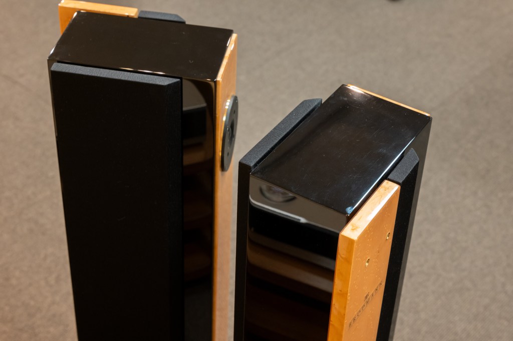 吸音材を使用せず、サウンドボードでレゾナンスをコントロールします。シンプルですが音響的に極めて合理的なエンクロージャー設計をしたスピーカー、その為スピーカー端子もシングルワイヤリングで完結できます。何時間でも聴き続けられる音がその魅力かと思います。コンディション良好、美品です。