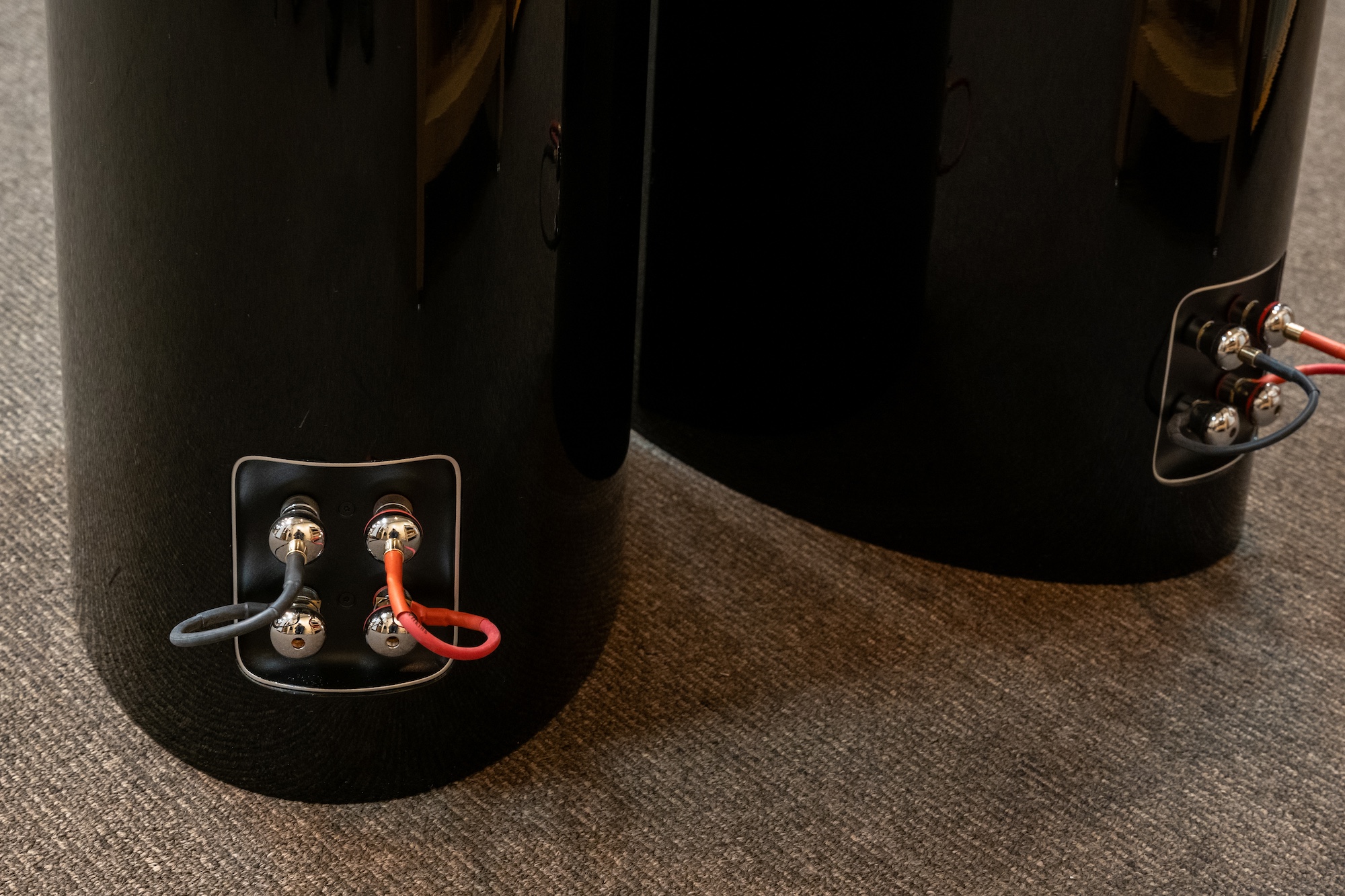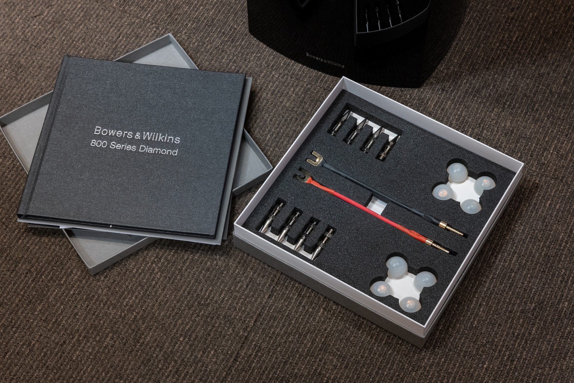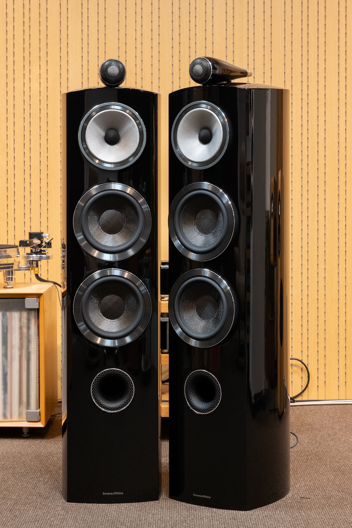 無垢のアルミ板内(オールニュー・ソリッドボディ・トゥイーター・ハウジング)へ収納し、磁気回路やサスペンション、ボイスコイルなどを刷新したダイヤモンドツイーターを搭載。これまでのケブラー素材に変わり、ミッドレンジにはコンティニウムコーンFSTを搭載。ウーファーは新しいコア材「シンタクティック・フォーム」、断面形状を変化させる技術を投入した「エアロフォイル(翼型)コーン」を採用。バッフル面から曲線を描くスリムなバッフルデザインに変更。内部のマトリックス補強構造も強化されています。使用経過範囲の小さな擦り傷は若干ありますが、コンディション良好です。
