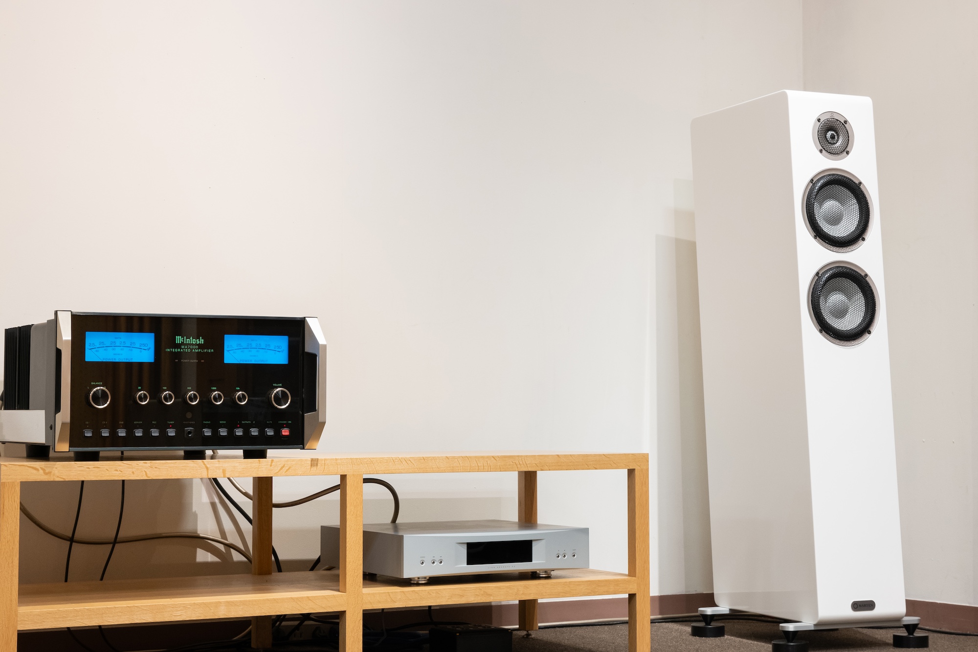 Oscar Trio の再生には Mclntosh のプリメインアンプを組み合わせました。ちょうど中古製品として入荷していた MA7000、少し前の世代となりますが駆動力には全く心配する必要がありません。MARTEN の澄んだ音色に Mclntosh 独特の濃さと厚みのあるサウンドがミックスされ個人的には好みのバランスになっていたかと思います。発売当初に再生した際の記憶にまた違った感触を加える事ができ、Oscar Trio の魅力が更に広がる濃密な時間を味わう事ができました。