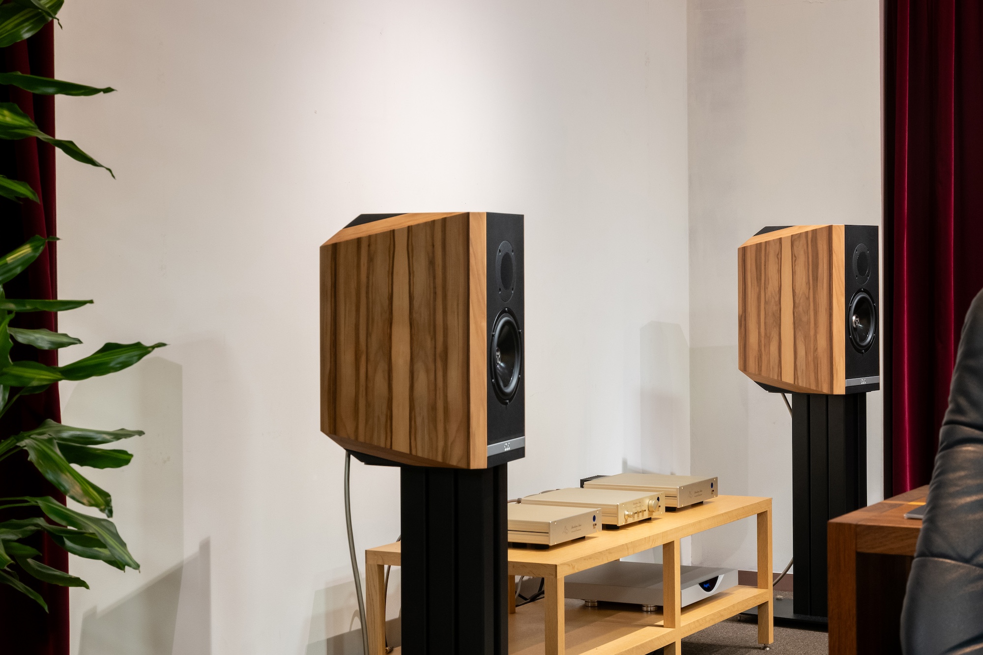 KUDOSのTITAN seriesから505と707が到着しています。ツィーター、ミッド/ウーファードライバー共にKUDOS専用設計のユニット、シンプルに設計された2wayシステムはブックシェルフ、フロアーモデルに共通。更に興味深いのはミッド/ウーファーユニットのアイソバリック方式、バッフル面に見えるユニットとは別にキャビネット内に背中向けに設置されたユニットがあり、内部の柱で部屋を分け中低音、特に低域周波数を正確にコントロールしています。サイドパネルも厚みの異なるHDFを重ね、キャビネット振動も含めた対策への細かな気配りが見て取れます。