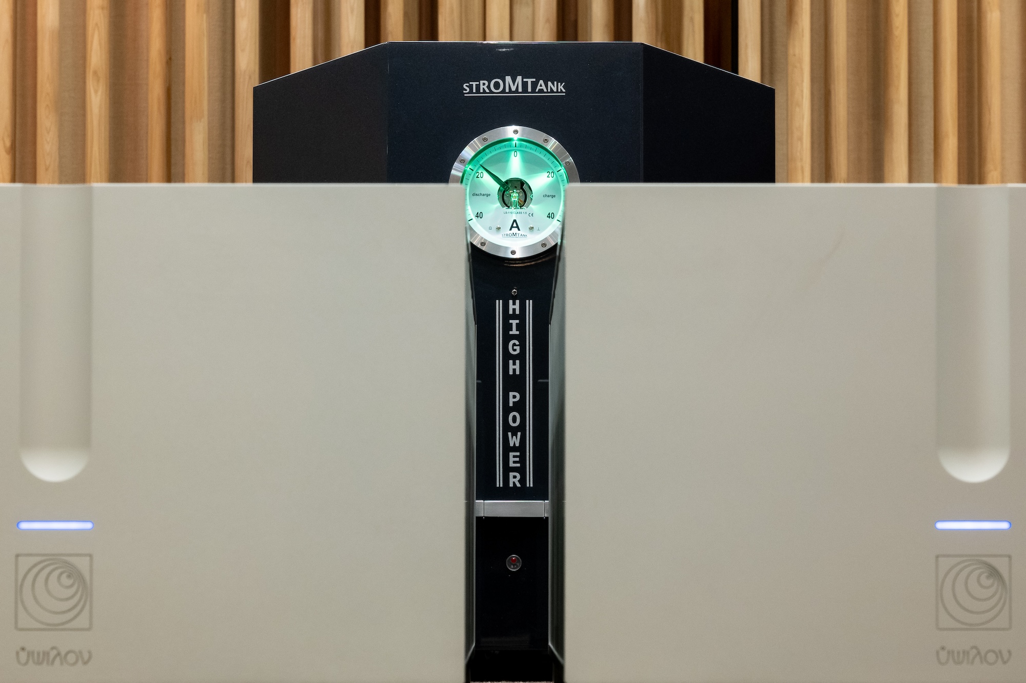 その選択肢の有力リストに入るであろうパワーアンプ YPSILON HYPERION。AVALON SAGA を鳴らしても、LINN 360 PWAB に変更してもそれぞれのスピーカーユニットを完全にグリップしドライブしていると感じます。その世界を聴くうちに、何かもう一つの手が打てないかと頭をよぎったのが電源でした。究極のバッテリー駆動電源。ラインアップ最重量級の STROMTANK S5000 HP を設置して、その世界がどれだけ変化するのかを確かめてみます。S5000 HP をこれだけ贅沢に使用することもなかなか無いだろうと思えますが、HYPERION の最大消費電力まで考慮しパワーアンプ専用電源として構えることに。勿論、動作は充電後のバッテリー駆動のみ。