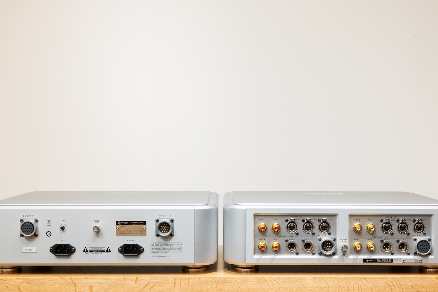 電源を別筐体とした2ユニット型、増幅部およびDCパワーサプライまで全て左右独立構造、ACパワーケーブルを含む全コンポーネントがモノブロック構成。メインユニットはモノブロックのプリアンプモジュール2基とロジック系コントロールモジュールで構成。プリアンプモジュールは入力アンプと出力アンプを上下2層に重ねたモノブロック構成で、信号経路を最短化。ボリュームはESOTERIC-QVCS(Quad Volume Control System)を採用。電源部はデュアルAC入力、デュアルDC出力とし、左右独立コンストラクションを徹底。合計で5つの大型電源トランス、大容量ブロックコンデンサ、SiC(シリコンカーバイド)ショットキーバリアダイオードなどを採用している。コンディション良好。