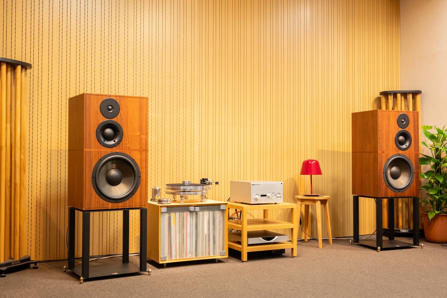ウーファーユニットはレスポンスが早く、もたつきの無い低音域はクリアーで見通しの良いサウンド。30cmウーファーでもこれくらい軽快に聴かせてくれるユニットは久しぶりだと思うのと同時に、この箱鳴りを生かして少し残響を効かせているところがニクい調整に思えます。新し過ぎず、古くない。あらゆる時代の録音を聴く事ができる現代の音楽再生に求めるちょうど良い温度がここにあると思えます。