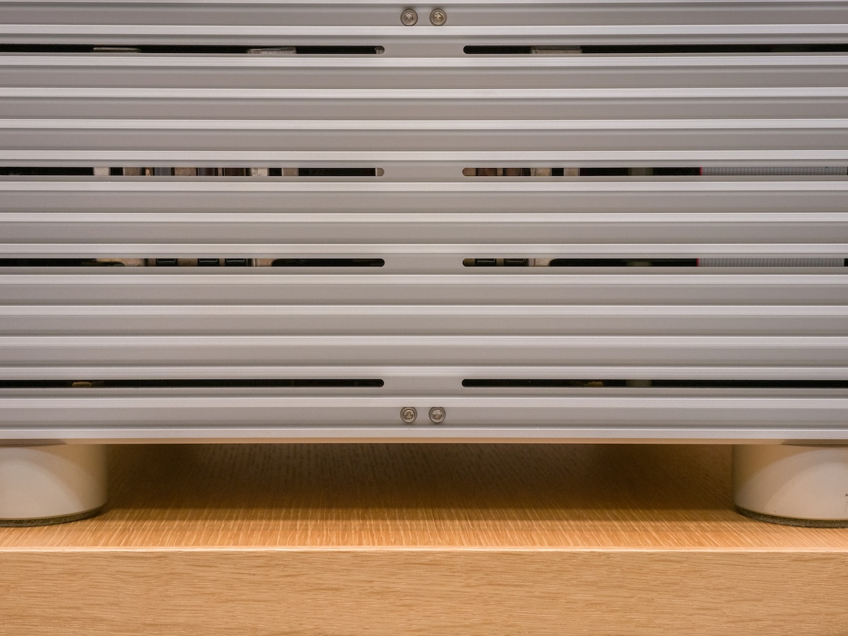 信号経路内に存在するトランスは全て自社設計、製造。ボリューム回路も自社設計のトランス方式にてエネルギーのロス無くボリュームコントロールする事を可能にします。シンプルでピュアな回路設計、増幅段には五極管をトライオード接続しゼロフィードバック回路を採用。展示品はSE仕様、カップリングトランス、トランスアッテネーターなどを含め全てのオーディオ信号経路に純銀線を使用したスペシャルモデル。銀は抵抗値が低いために特に微小信号を流すプリアンプにおいて圧倒的な音質優位性を持ちます。