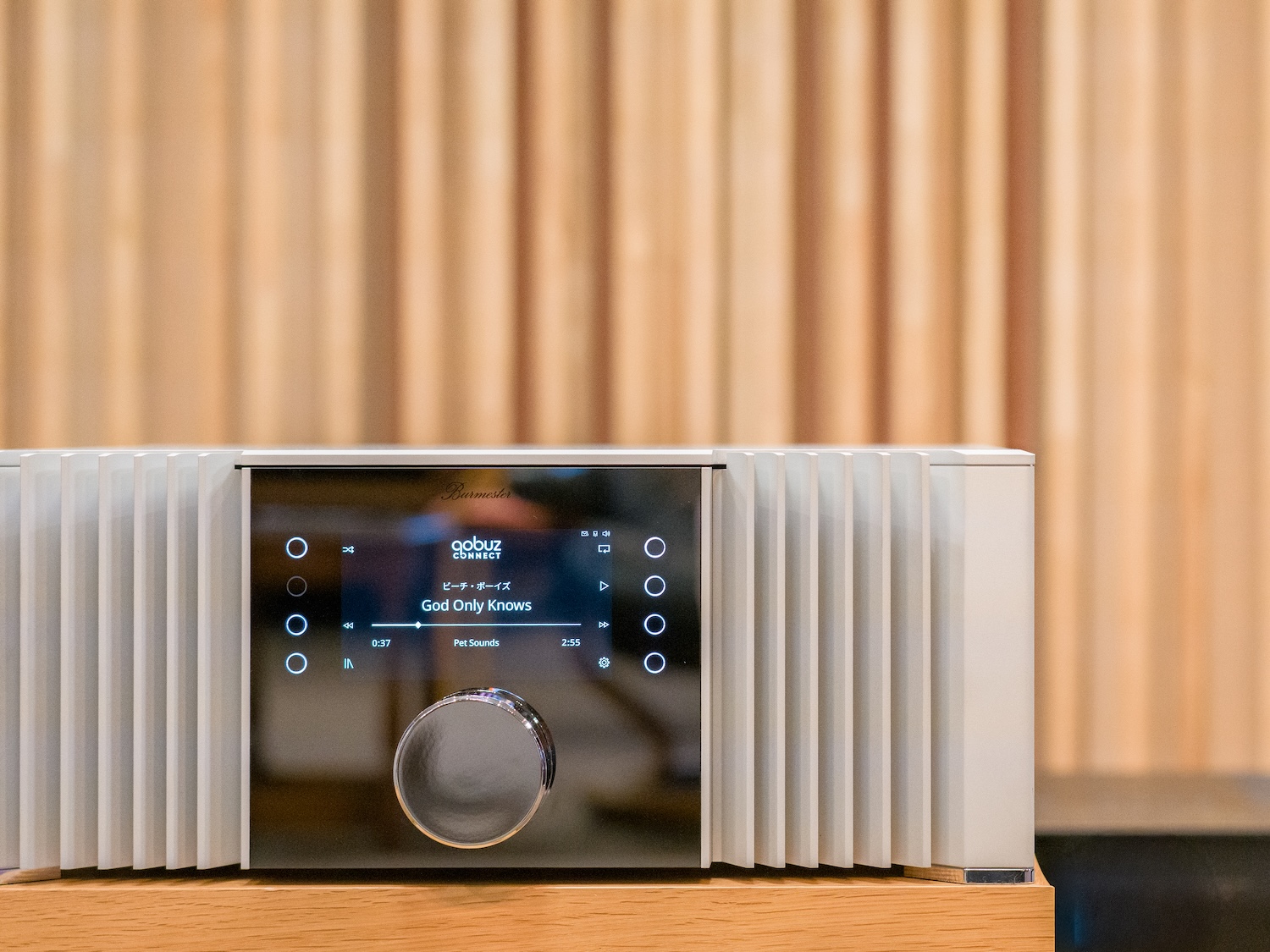 Burmester 232 をフロアーで試聴しました。プリメインアンプとしては国内展開の3機種目となりますが、ストリーミング再生など豊富な機能を備えたモデルとしては大きく内容を更新した新世代の製品と言えます。Qobuz Connect、Spotify に対応しているので契約している方は設置後、直ぐに再生が可能。勿論、Roon Ready にも対応していますので、Roon 再生環境が整っている方もスムーズです。ディスプレイ表示も大きく見やすくなりました。 Burmester が新たに開発したロータリーエンコーダーは内部に金属粒子を含む特殊な液体が封入され、歪のない高精度なボリュームコントロールを実現しています。このロータリーエンコーダーひとつで音量調整から入力切り替え、本体設定など様々にコントロールを可能にしています。更に、各設定によってロータリーエンコーダーは反応、感触を変化させます。例えば音量調整時と左右のバランス調整では、ノブの重さや1ステップの長さも異なります。