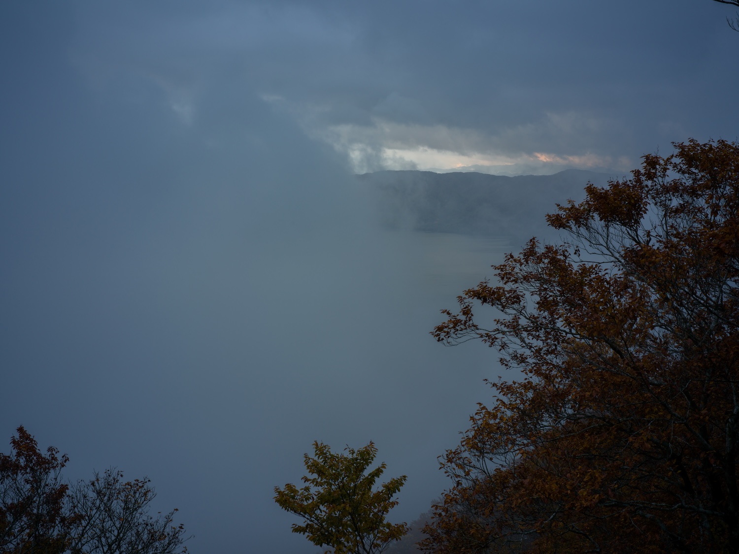 そこから南下して十和田湖へも。いつもならここから十和田湖を一望、のはずでしたがご覧の通り霧に包まれておりました。これも良い思い出です。