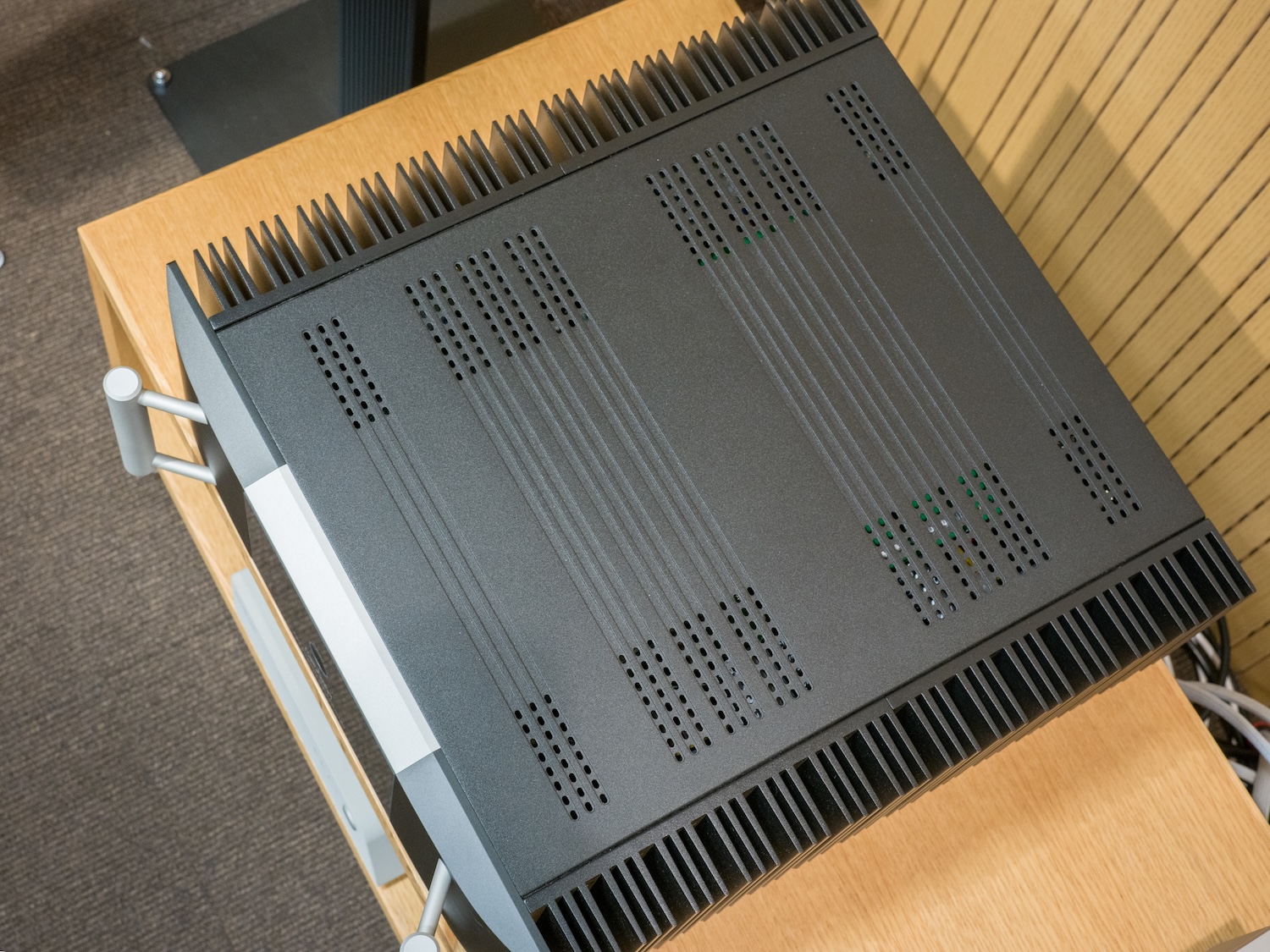 完全ディスクリート構成のダイレクトカップリング回路によるクラスABアンプモジュールを搭載。クラスAで動作する2つの高速ドライバートランジスタと、6つの260V/15A出力トランジスタの出力段で構成。左右チャンネル用に個別の2次巻き線を備えた1,100VA大容量トロイダルトランス。最終の出力段に近接装備された大型コンデンサから供給される電力により8Ω負荷時135W/ch、4Ω負荷時270W/ch、ブリッジモードでは4Ω負荷時550Wおよび2Ω負荷まで駆動保証。コンディション良好。